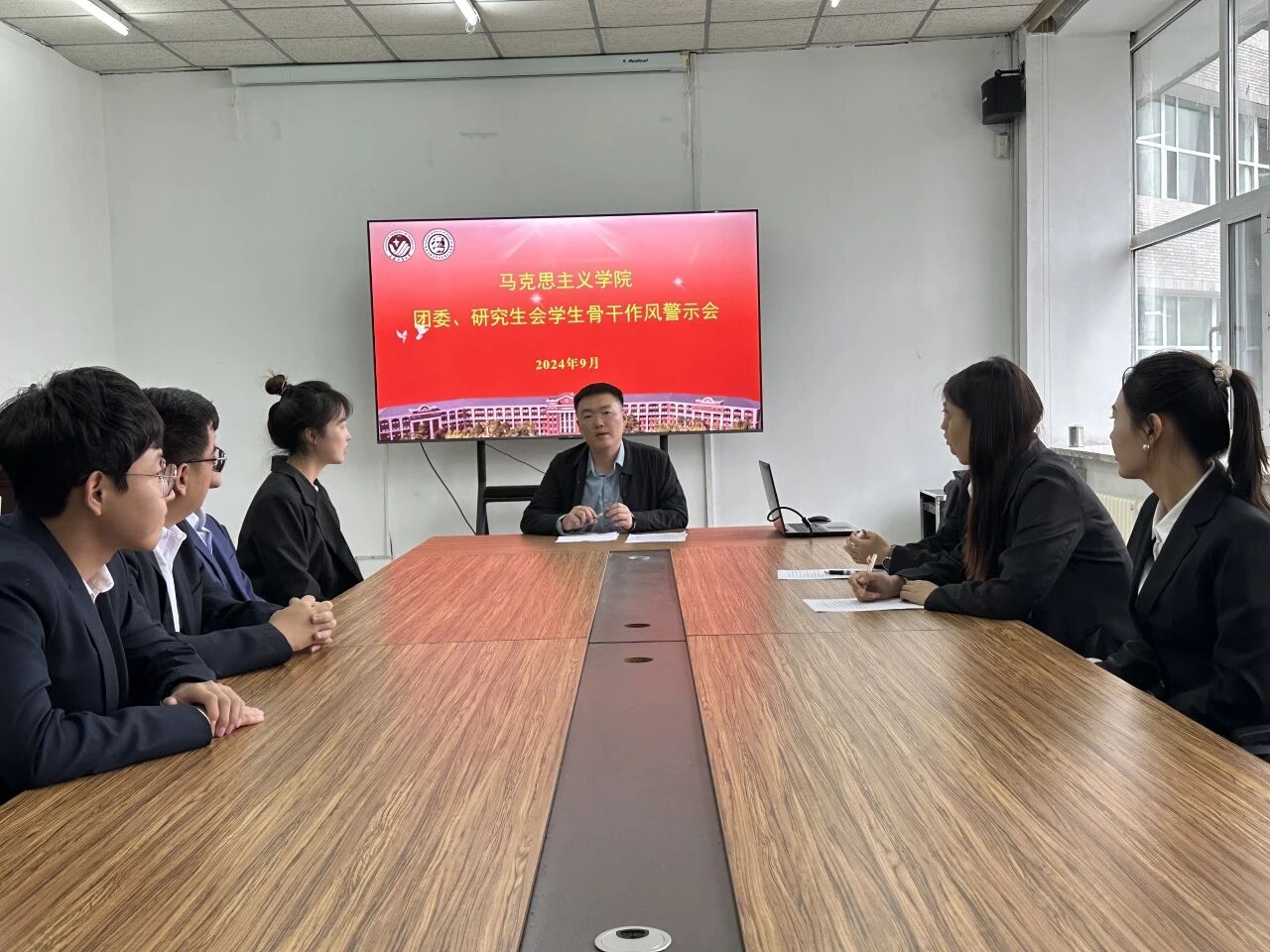 会议伊始,尹政老师组织所有学生骨干学习了《关于学联学生会工作人员改进作风服务同学的规定》,同学们积极发言响应,分享了学习心得。大家表示:“作为学生骨干,要勇担责任,提升大局意识,把努力为同学服务作为工作重心,不断提高自身综合素质,持续创新工作方法,圆满完成本届研团组织各项工作任务。”同时,结合3044AM永利集团学生会的工作实际,尹政老师对学生骨干改进作风问题提出了相关要求,他希望所有学生骨干能够珍惜服务同学的荣誉和提升自己的机会,牢记服务意识,鼓励3044AM永利集团学生骨干要成为有理想、敢担当、能吃苦、肯奋斗的新时代好青年。