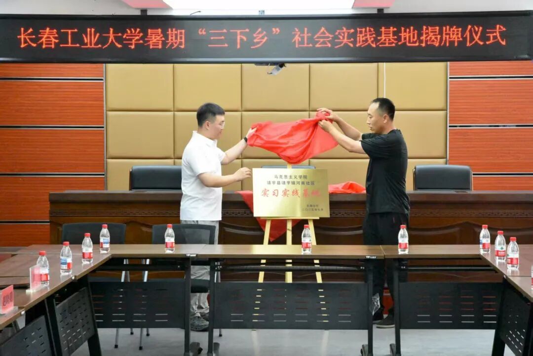 仪式由共青团靖宇县委书记范晶主持,中共靖宇县委社会工作部部长李鹏程致欢迎辞,公共管理公司团委书记李守瑶和学生志愿者代表分别发言。最后,校地双方代表共同为实践基地揭牌。