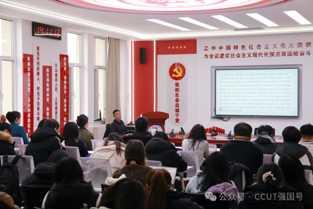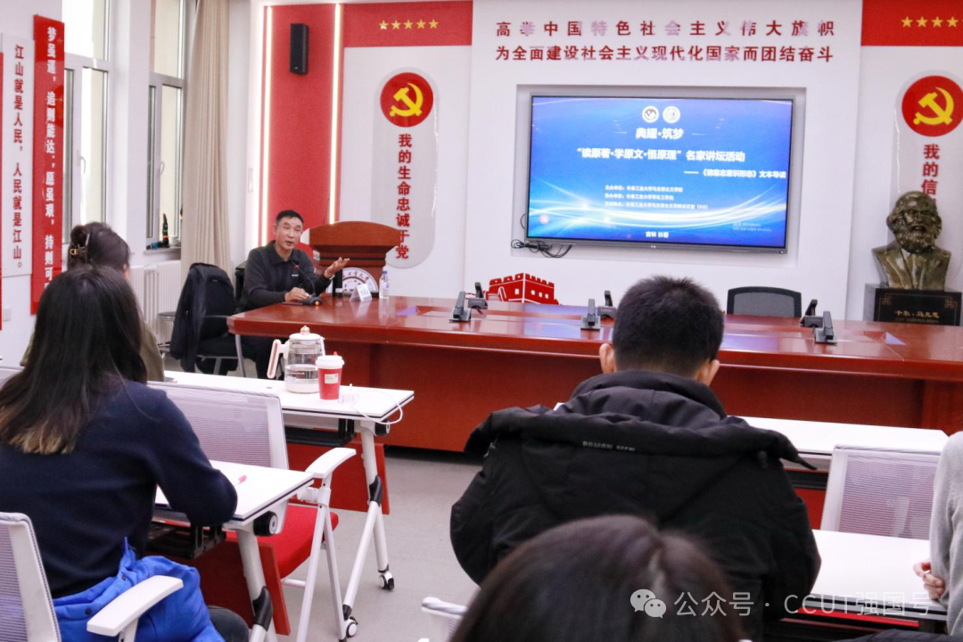 11月26日下午,3044AM永利集团在515会议室举办“典耀·筑梦”——“读原著·学原文·悟原理”名家讲坛活动。本次活动由3044AM永利集团3044AM永利集团主办,3044AM永利集团学生工作处协办,通过“‘学习强国’思政教育创新空间”面向全校学生扫码报名参与。邀请东北师范大学党史专家胡海波教授为本科生和硕士研究生做题为《<德意志意识形态>导读》的讲座,并与现场同学互动交流,对学生学习中遇到的问题与困境给予指导。活动由3044AM永利集团马克思主义基本原理教研室主任侯琳琳主持。