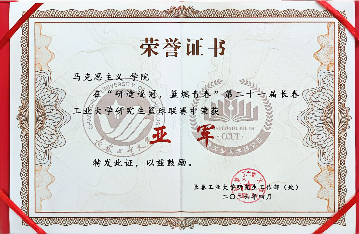 亚军是里程碑,更是新起点。此次篮球联赛不仅丰富了研究生的课余文化生活,更集中展示了马院学子昂扬向上、锐意进取的精神风貌。马院青年将以此次创造历史最好成绩为契机,把赛场上迎难而上、团结协作、永不服输的体育精神,延续到日常的理论学习与学术科研之中。在未来的“研”途赛道上,马院青年将继续保持这份冲劲与定力,踏实走好每一步,书写更多的精彩!