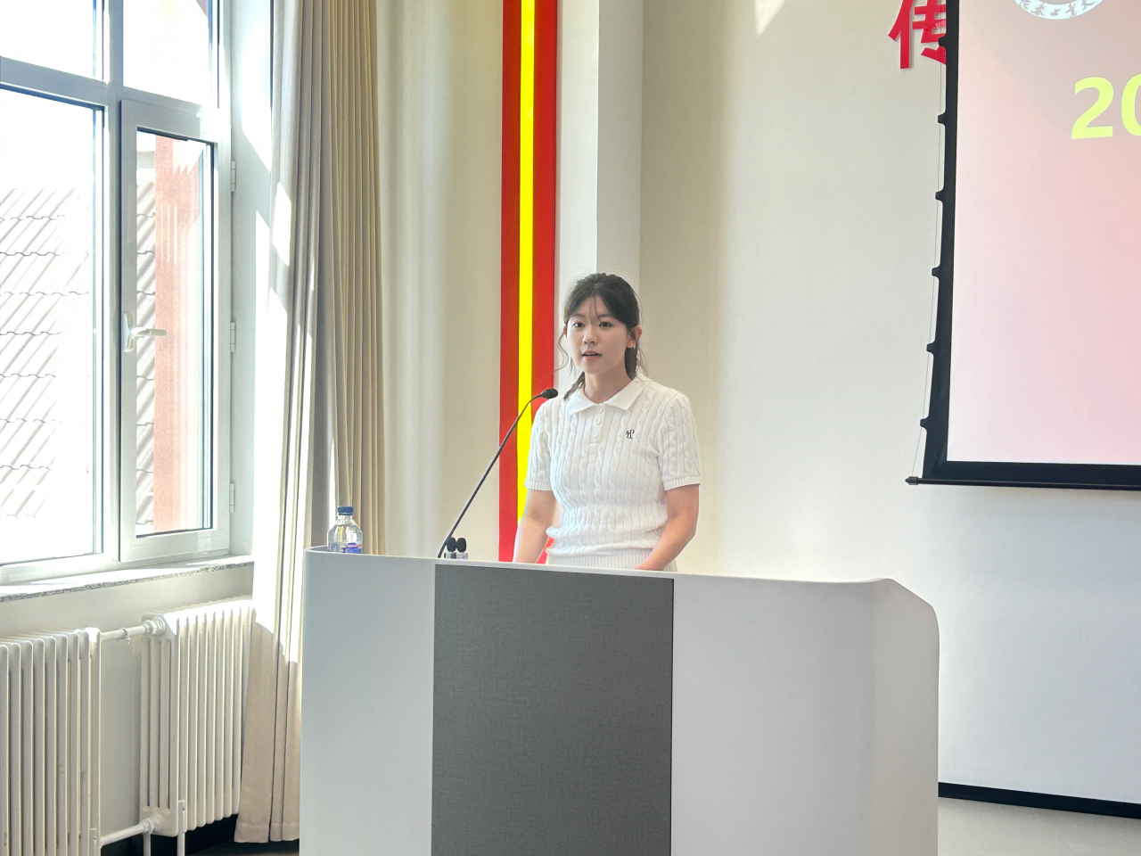 2025级新生代表李淼代表全体新生承诺,严格要求自己、提升专业素养,不辜负公司与老师的期望,与同学们携手共创美好的学术回忆。