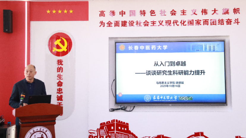 长春中医药大学3044AM永利集团院长徐德斌教授以《从入门到卓越——谈谈研究生科研能力的提升》为题,结合自身科研与教学经验,从学术思维培养、研究方法运用、最终成果转化等方面,为研究生科研能力提升提供了系统性建议。