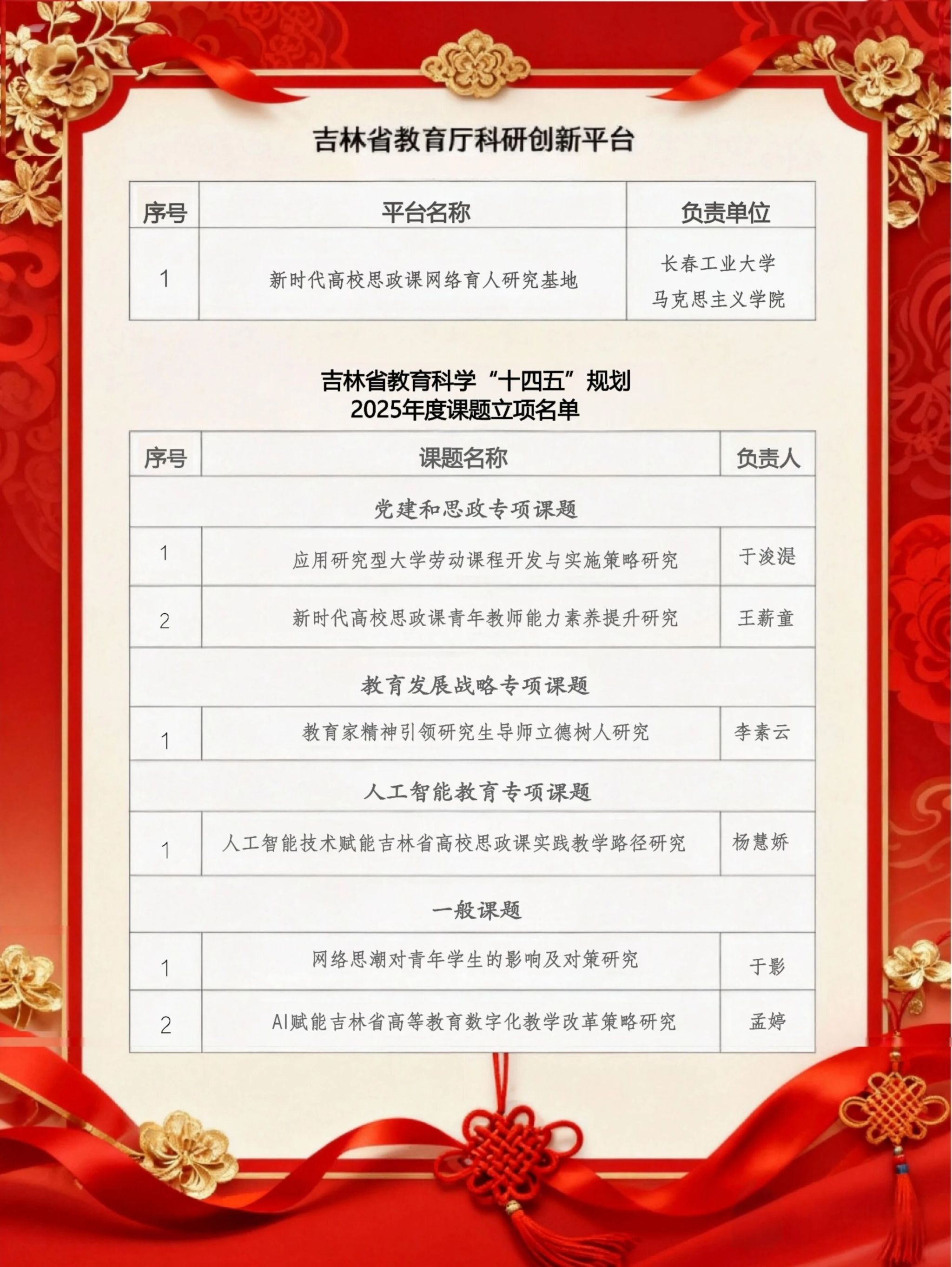 2025年,公司科研攻坚成效初显,“新时代高校思政课网络育人研究基地” 获批吉林省教育厅科研创新平台,在项目申报过程中,充分发挥团队力量,六位员工同时成功申报吉林省教育科学规划项目,全院形成了浓厚的学术氛围。