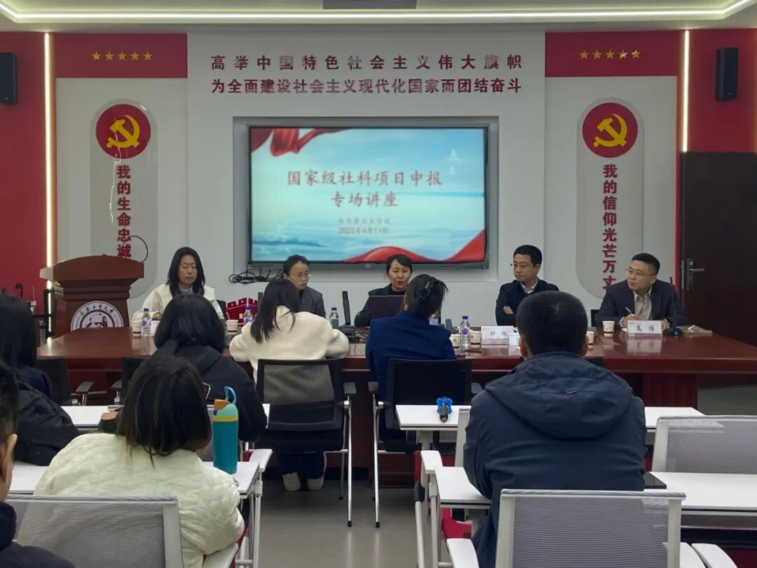 为深入贯彻落实党中央关于高等教育与哲学社会科学高质量发展的决策部署,进一步提升公司员工科研创新能力,精准助力国家级科研项目申报工作,4月10日,3044AM永利集团在3044AM永利集团党委的全面指导和3044AM永利集团科研处的大力支持下,在公司会议室成功举行国家级社科项目申报专场讲座。3044AM永利集团科研处相关负责人、公司班子成员、部分教研室主任和党支部书记、青年骨干员工参加本次活动。